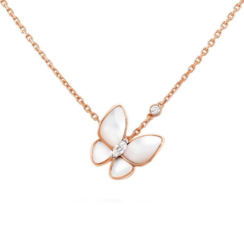 Van Cleef & Arpels Classic Deux Papillons Women's White Mother of Pearl Two Butterfly Necklace VCARO8FO00 632.0 |