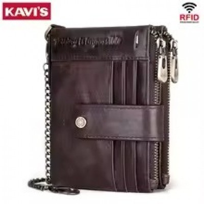 Cartera informal de cuero genuino para hombre, con bloqueo RFID, tarjetero y bolsillo para monedas con cremallera, billetera plegable de alta calidad.