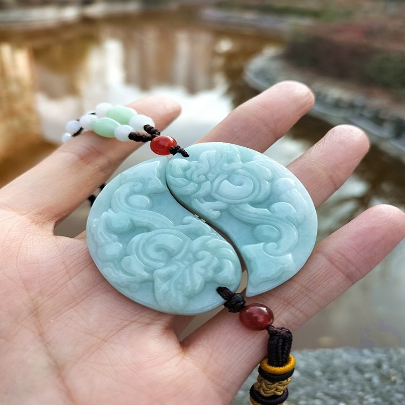 Heart Jade Thread Natural Jade Dragon Phoenix Jade Pendant Tai Chi Fish 9012.3 |