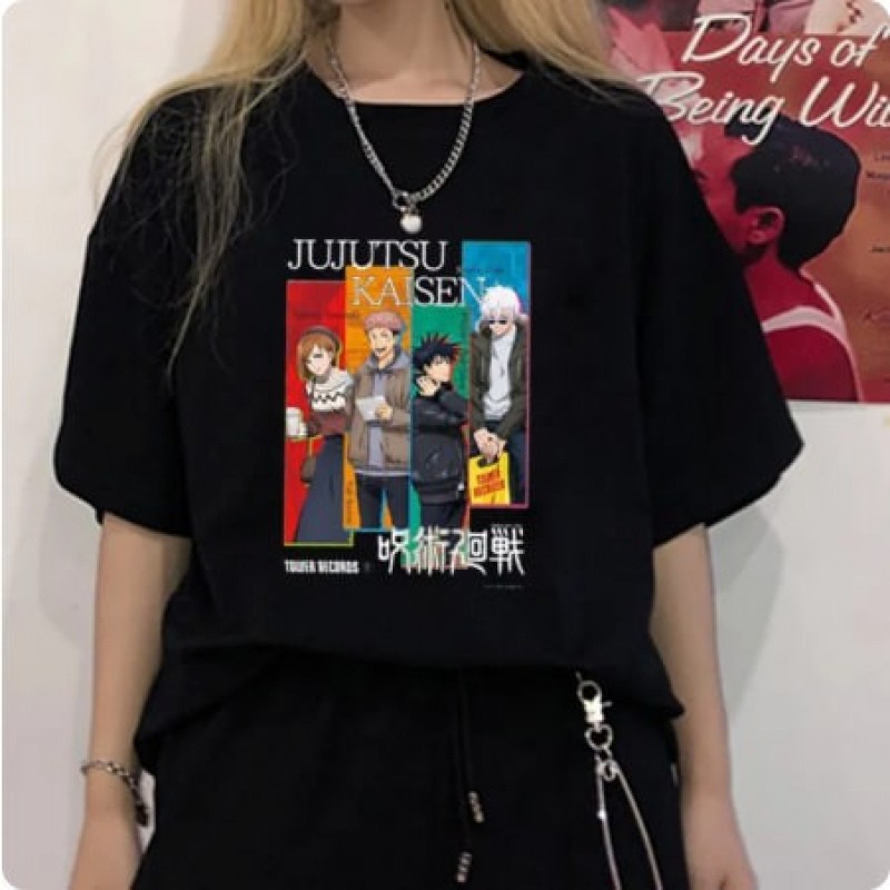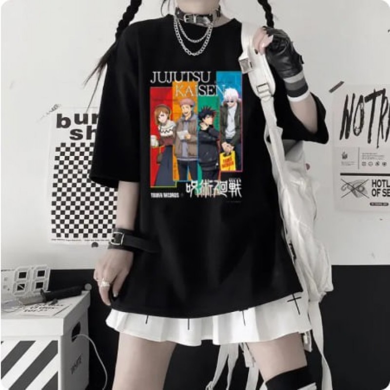 T-shirt wanita Anime Jepun Jujutsu Kaisen Grafik t-shirt Tops Musim Panas Harajuku Gothic Tshirt Lengan Pendek Tshirt kapas Pakaian pelbagai saiz
