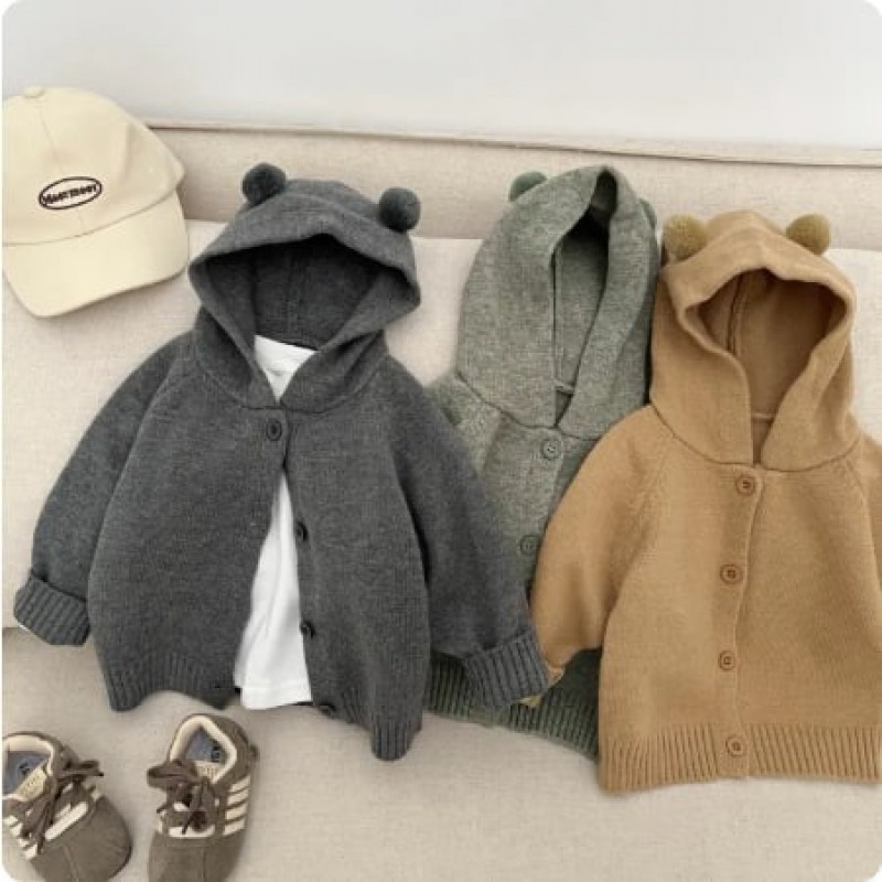 Korean Style Kids Knitted Hoodie Jacket 2025 Autumn New Arrival Unisex Baby Cute Cardigan Infant Autumn Clothes Polyester Fiber 27.2 |