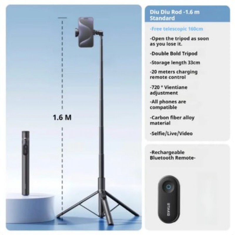 RTAKO RZP-001 AB226 1.7M Diudiu Multifunctional Ultra-Wide 720° Bluetooth Selfie Stick Floor Pop-Up Tripod Phone Holder 122.5 |